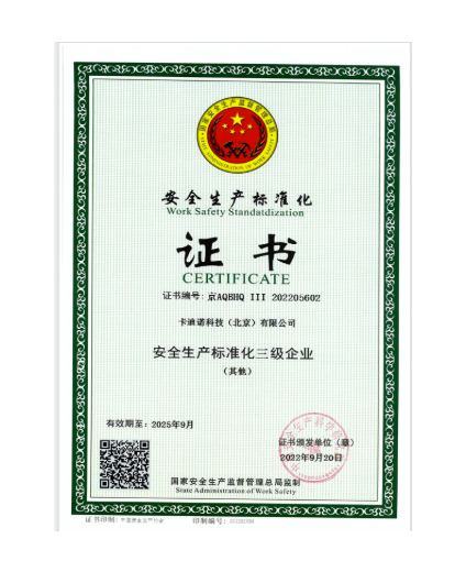 本企业已成功获得安全生产标准化证书,这证明我们在安全生产管理方面达到了高标准,能够确保员工和客户的安全。